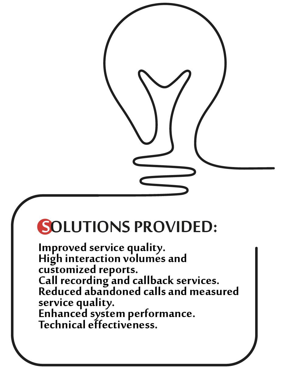 Improved service quality. High interaction volumes and customized reports. Call recording and callback services. Reduced abandoned calls and measured service quality. Enhanced system performance. Technical effectiveness.